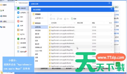 在页面右下角点击“立即备份”,依次点击“AppDomain-com.apple.Maps”、“Library”、“Preferences”,打开“com.apple.Maps.plist”文件夹。