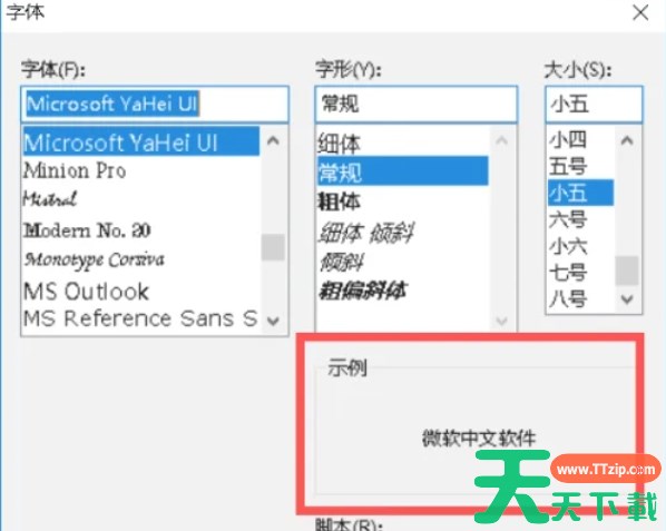 在设置窗口右侧的预览区域,可实时查看字体调整后的显示效果。