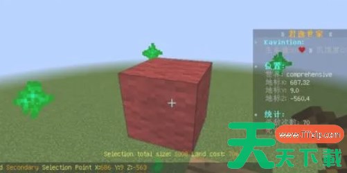 然后走到对角线的另一个角上(最高点),右键点击一下,作为终点(点B)。时,你已经设定了一个以AB连线为体对角线的长方体区域作为你的领地。