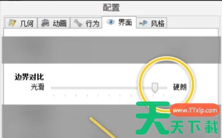 2、在配置窗口中,找到并点击“界面”(Interface)选项,在“界面”选项下,找到“边界对比”(Edge Contrast)设置面板。将滑块拖动到“硬朗”(Hard)位置,完成后,点击窗口下方的“确定”(OK)按钮,以保存设置。