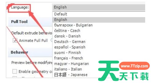 3、点击“Language”选项右侧的下拉按钮,在弹出的语言列表中选择“中文(简体)”。