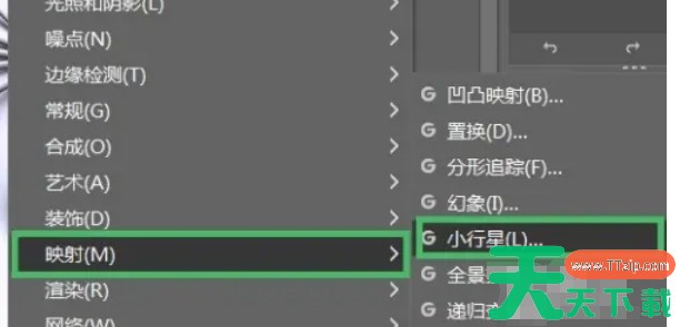 在gimp的菜单栏中,点击“滤镜”菜单。在下拉菜单中,选择“映射”子菜单。在“映射”子菜单中,找到并点击“小行星”选项。