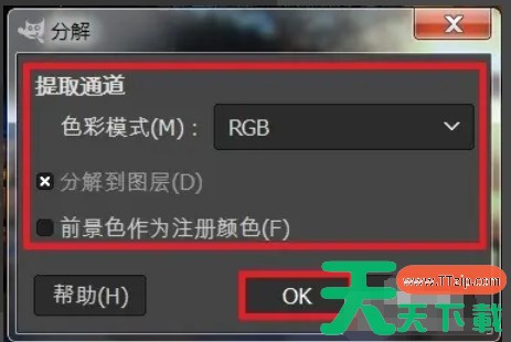 设置好参数后,点击对话框中的“确定”按钮。GIMP将应用分解效果,将图像的通道分解为独立的图层(如果您选择了“分解到图层”选项)。