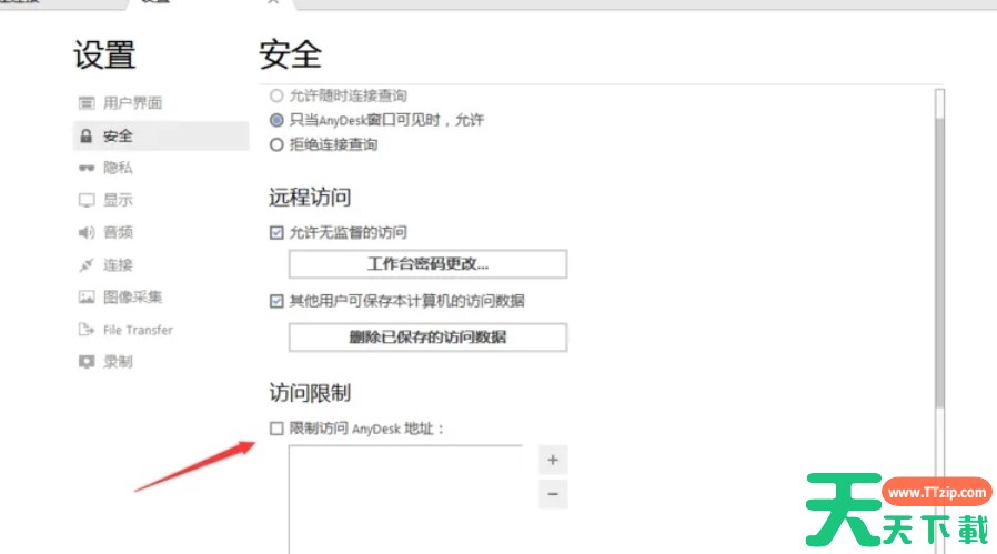 以上就是天天下载Ttzip为你整理的Anydesk怎么设置访问白名单以及Anydesk设置访问白名单的方法啦,希望能帮到您!
