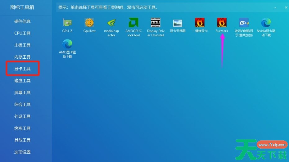 3、在图吧工具箱中选择“显卡工具”,找到并打开FurMark工具。