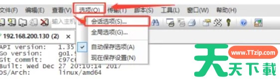 点击securecrt上部工具栏的“选项”按钮。选择“会话选项”以进入相关设置界面。