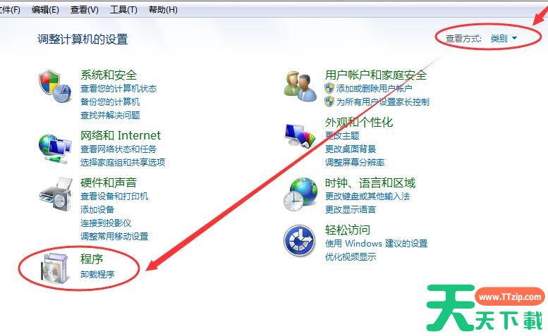在控制面板选项卡中,查看方式设置为:类别,点击左下角卸载程序。