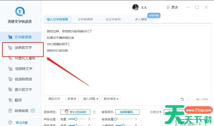 以上就是天天下载Ttzip为您整理的迅捷文字转语音软件怎么将音频转换成文字?迅捷文字转语音软件将音频转换成文字的方法啦,希望能帮到您。