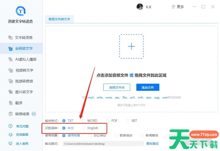 以上就是天天下载Ttzip为您整理的迅捷文字转语音软件怎么将英文录音文件转成文字?迅捷文字转语音软件将英文录音文件转成文字的方法啦,希望能帮到您。