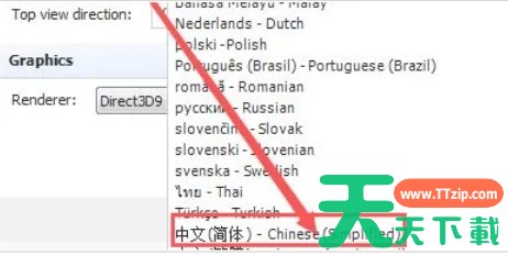 点击“Language”选项框的下拉按钮,在下方给出的选项列表中选择“中文简体”。