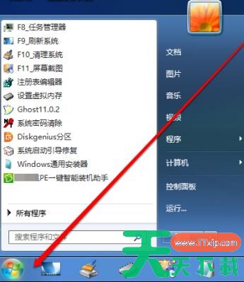 PE系统启动后,点击PE的开始。