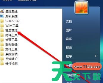 在PE的菜单中,点击磁盘管理按钮。