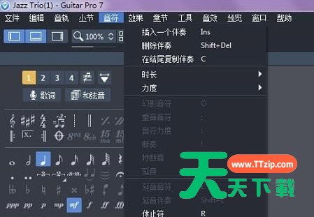 插入音符,刚开始编辑时,可以将光标移到需要插入音符的地方停下,点击插入相应的音符便可以了,但是如果是要在某音“后面插入空拍” 那么光标位置应该选择某音的后面那个音符位置,其实插入功能我感觉也没什么大用处,就是当一小节编辑完了发现掉了音符时可以用这个功能。 编辑没出现错误“后面插入空拍”纯属多余,也没这功能,正常编辑顺序是以小节为单位,在小节范围内按照前后顺序编辑;如果你非从后面开始编辑,那么你可以先建立休止小节(使用4分或者8分休止符)以上就是在Guitar Pro7中输入音符的图文教程,希望可以帮助到你哦。