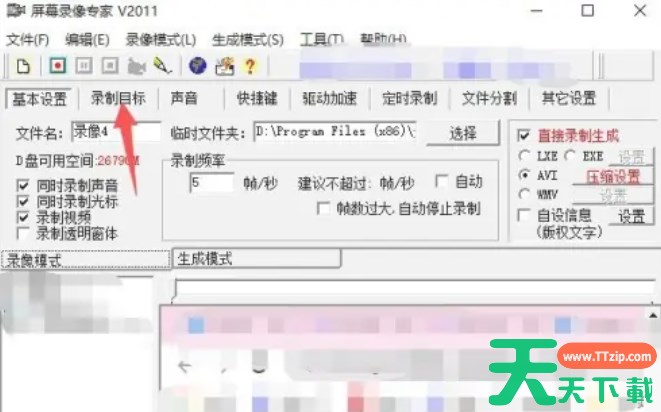 2、选择录制目标:在软件的主界面中,找到并点击“录制目标”一栏。