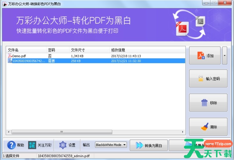 以上就是天天下载Ttzip为您整理的万彩办公大师彩色PDF怎么转化为黑白PDF?万彩办公大师彩色PDF转化为黑白PDF的方法啦,希望能帮到您。