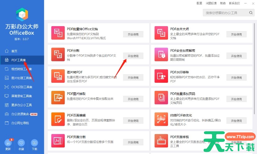 万彩办公大师是一个十分强大的办公软件,那么万彩办公大师怎么拆分pdf?万彩办公大师拆分pdf的方法?下面就让天天下载Ttzip给大家解答下吧!