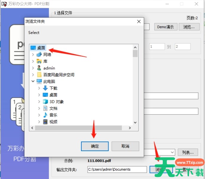 在打开的窗口中选择分割后文件的存放位置,然后点击“确定”。