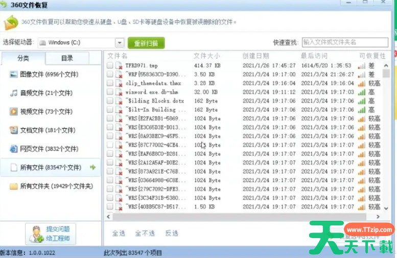 以上就是天天下载Ttzip为你整理的360文件恢复怎么恢复数据文件以及360文件恢复恢复数据文件的方法啦,希望能帮到您!
