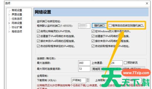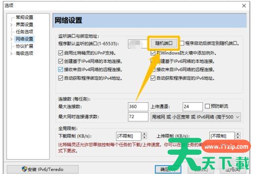 在“网络设置”选项中,点击“随机端口”按钮,生成随机的程序默认监听端口。
