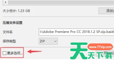 点击压缩窗口中的“更多选项”按钮,以展开更多的压缩设置选项。