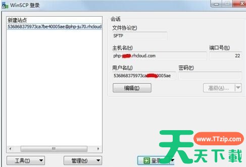如图,天天下载Ttzip新建了一个站点的信息,并且保存了下来,保存以后在左侧新建站点下方目录会出现新建的站点,便于下次登录