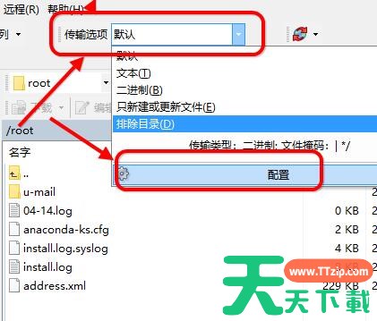 在会话界面,点击传输选项--配置