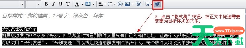有很多朋友才接触Foxmail软件,可能还不会使用格式刷,那么Foxmail具体是如何使用格式刷的呢?下面天天下载Ttzip就讲解了Foxmail使用格式刷的操作内容,来下文看一看吧。