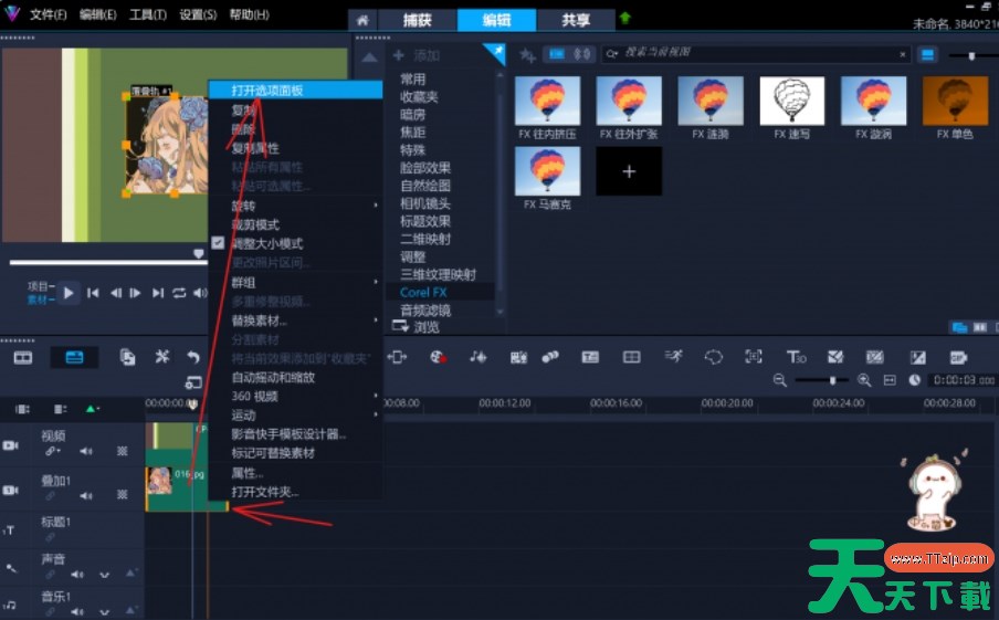 会声会影(Corel VideoStudio)为加拿大Corel公司发布的一款功能丰富的视频编辑软件,那么会声会影怎么抠图换背景?会声会影抠图换背景的方法?下面就让天天下载Ttzip给大家解答下吧! 会声会影怎么抠图换背景? 1、打开会声会影软件,将需要抠图的视频或图片素材导入到项目中,选中叠加轨道上的素材,点击鼠标右键,选择“打开选项面板”以打开编辑界面。 2、在选项面板中找到“色度键去背”选项,并勾选它。 3、点击“取色器”,然后在预览窗口中点击素材的背景颜色,以选择需要去除的颜色,这样就可以换背景了。 以上就是天天下载Ttzip为您整理的会声会影怎么抠图换背景?会声会影抠图换背景的方法啦,希望能帮到您。 除特别注明外,本站所有文章均为 天天下载 原创,转载请注明出处来自 https://www.ttzip.com/209195.html