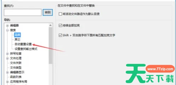 在自动重置设置界面中,找到“正则表达式”选项,并勾选它。这里的勾选操作实际上是为了在UltraEdit启动时自动关闭正则表达式功能。