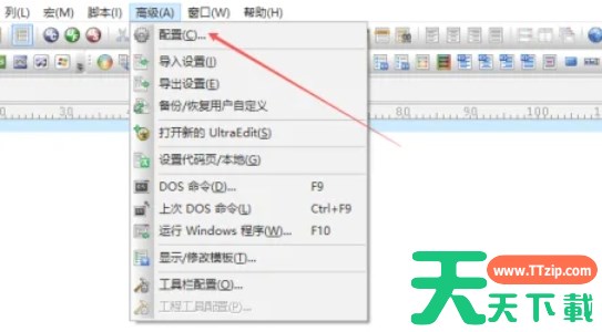 在UltraEdit的菜单栏中,找到并点击“高级”(Advanced)菜单项。