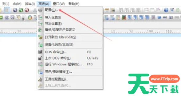 在UltraEdit的菜单栏中,找到并点击“高级”(Advanced)菜单项。