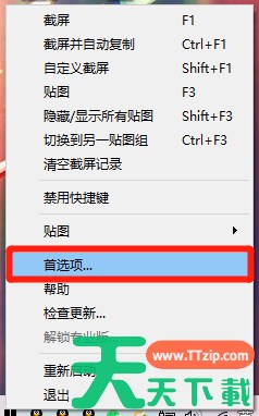 第一步:鼠标右键单击“Snipaste”图标,在展开的下拉框中选择“首选项...”。