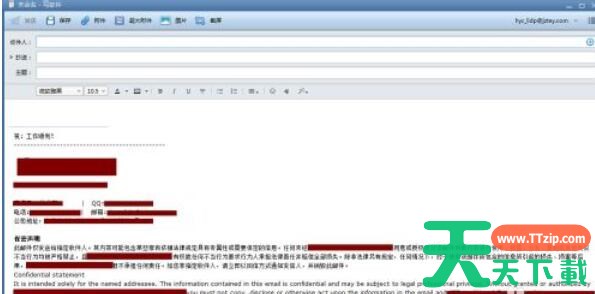 5、设置完签名后,点击确定,然后创建一个新邮件,就能看到自己设置的邮件签名了