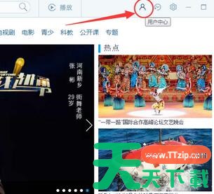 1、打开央视影音,在其右上角的位置打开“用户中心”;