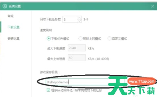 在系统设置中,选择“下载设置”。记住“游戏保存目录”的路径,然后关闭对话框。