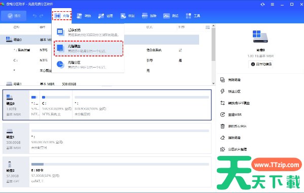 首先,打开傲梅分区助手软件,在界面上找到并点击“所有工具”选项,接着选择“克隆硬盘”这一实用功能。