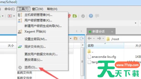 在弹出的“工具”下拉菜单中,找到并点击“选项”项。这将打开Xftp的选项设置窗口。
