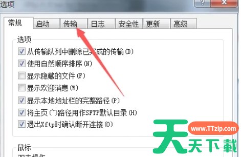 在选项设置窗口的左侧,找到并点击“传输”选项。这是包含与文件传输相关设置的类别。
