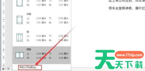第三步:之后,在下拉选框中选择“自定义页边距”(如图所示)。