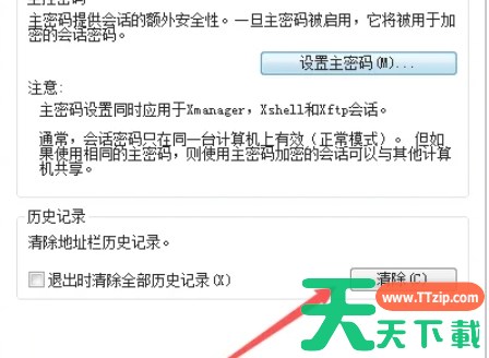 在“安全性”界面中,找到“退出时清除全部历史记录”的选项,并将其勾选上。这样,每次退出Xftp时,软件都会自动清除历史记录。