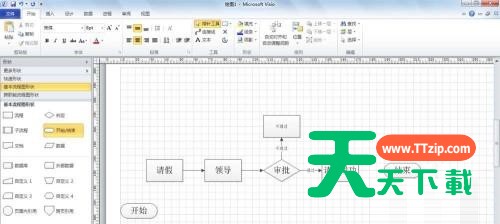 很多人不知道Microsoft Visio怎么绘制请假流程图?今日为你们带来的文章是Microsoft Visio绘制请假流程图的方法,还有不清楚小伙伴和天天下载Ttzip一起去学习一下吧。 第一步:首先画一个代表请假开始的流程(如图所示)。 第二步:请假条提交给领导,就在请假流程之后添加一个领导的流程(如图所示)。 第三步:领导需要对请假条进行审批,所以在领导流程之后画一个审批的判断,判断结果有通过和不通过种(如图所示)。 第四步:若是不通过就做不通过分支流程(如图所示)。 第五步:若是通过就请假成功分支流程(如图所示)。 第六步:根据上面的操作代表流程的结束了,但是流程图的开始和结束有标识图说明,所以需要添加上开始和结束的图标(如图所示)。 第七步:最后我们把开始的图标指向流程的开始,把所有未归结的流程都归结到结束图标,这样才是一个完整的流程图(如图所示)。 以上就是天天下载Ttzip给大家带来的Microsoft Visio怎么绘制请假流程图的全部内容,希望能够帮助到大家哦。 除特别注明外,本站所有文章均为 天天下载 原创,转载请注明出处来自 https://www.ttzip.com/209382.html
