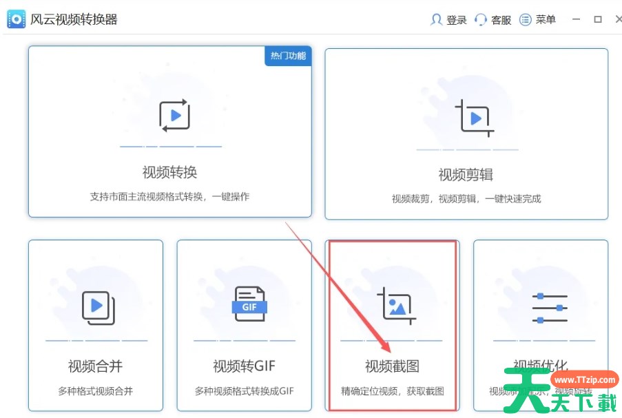 风云视频转换器是一款方便好用的视频转换软件,支持常用视频格式互相转换,视频合并、视频分割、转GIF,可调节分辨率、比特率、帧数、编码格式等。那么风云视频转换器怎么设置截取视频为单张图?风云视频转换器设置截取视频为单张图的方法?下面就让天天下载Ttzip给大家解答下吧!