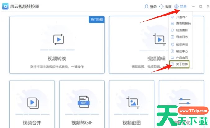 风云视频转换器是一款简单实用的视频转换软件,那么风云视频转换器如何查看版本号?风云视频转换器查看版本号的方法?下面就让天天下载Ttzip给大家解答下吧! 风云视频转换器如何查看版本号? 1、打开风云视频转换器,在主界面的右上方,找到并点击“菜单”按钮,在下拉菜单中选项“关于软件”。 2、点击“关于软件”后,会弹出一个对话框或窗口,显示风云视频转换器的当前版本信息。在这个窗口中,可以看到软件的名称、版本号以及其他相关信息。 以上就是天天下载Ttzip为您整理的风云视频转换器如何查看版本号?风云视频转换器查看版本号的方法啦,希望能帮到您。 除特别注明外,本站所有文章均为 天天下载 原创,转载请注明出处来自 https://www.ttzip.com/209401.html