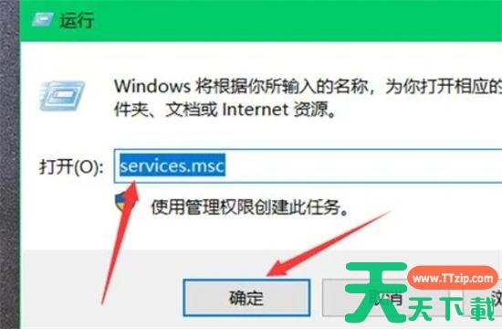 1.在电脑按WIN+R组合键,打开运行窗口输入【services.msc】,点击【确定】按钮;