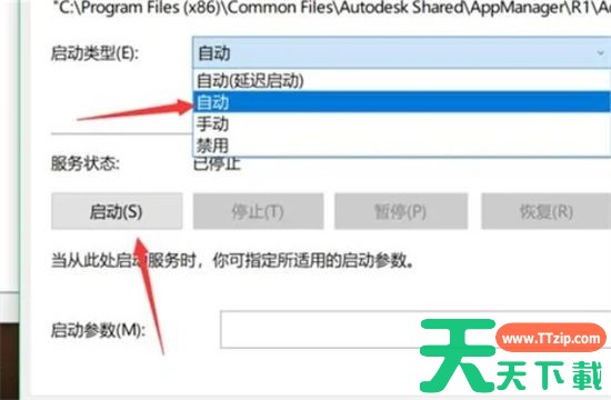 5.选中【自动】,再在服务状态中点击【启动】按钮;