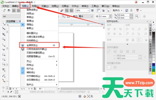 使用CorelDraw的时候,很多小伙伴不知道怎么预览绘图,下面天天下载Ttzip就给大家带来CorelDraw预览绘图教程,有需要的小伙伴不要错过哦。 1、首先打开CorelDraw。 2、然后点击菜单栏的“视图”,再点击“全屏预览”。 3、最后CorelDraw页面直接铺满电脑屏幕,如果要退出全屏预览,则单击屏幕上的任意位置或按任意键就可以返回到应用程序窗口了。 以上就是CorelDraw预览绘图教程的详细内容,希望对您有所帮助。 除特别注明外,本站所有文章均为 天天下载 原创,转载请注明出处来自 https://www.ttzip.com/209439.html