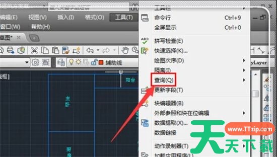 2.调出工具选项,用鼠标指着“查询Q”,激活查询命令;