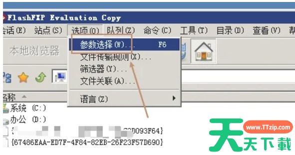 1、打开FlashFXP软件,点击软件上方的“选项”,在弹出的选项中点击“参数选择”。