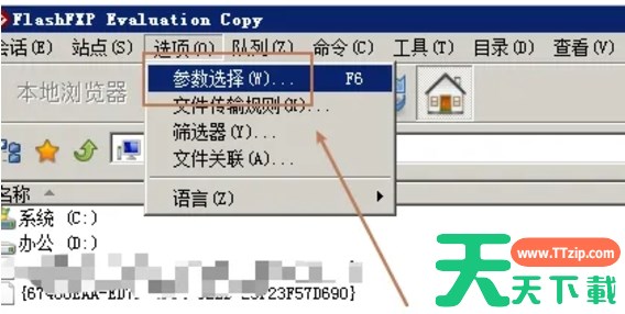 1、在FlashFXP的主界面中,点击菜单栏上的“选项”(Options),在下拉菜单中,选择“参数选择”(Preferences)以打开参数设置窗口。