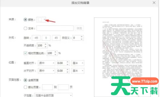选择完颜色后,单击“添加文档背景”对话框中的“确定”按钮。